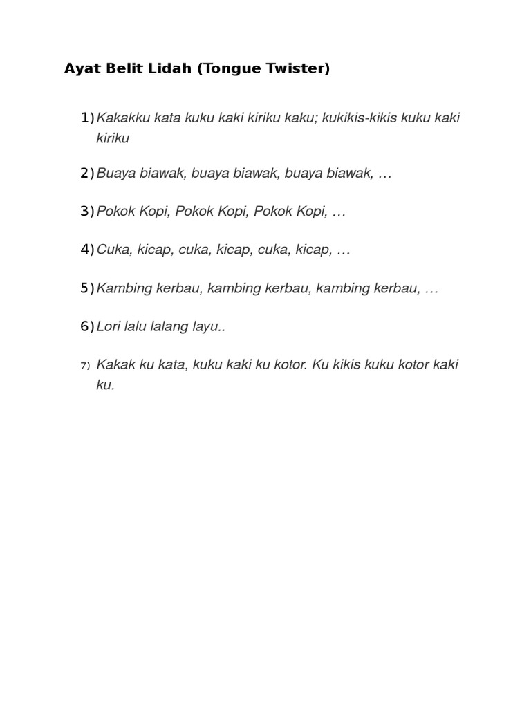 Iii berlipat ganda - melipatgandakan. Tongue twister masih dianggap cukup efektif untuk melatih cara kita berbicara. Contoh ayat ialah.